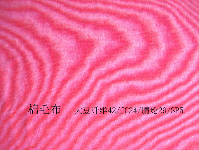 4、抗菌抑菌功能:大豆纖維具有較強的抗菌功能,能夠有效殺滅接觸到的大腸桿菌、白色念珠菌、金黃色葡萄球菌等菌種。純大豆纖維針織布對大腸桿菌殺滅率92%,對白色念珠菌殺滅率98%、金黃色葡萄球菌殺滅率98%.
